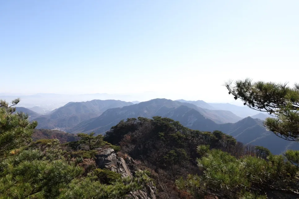 다른 산행지보다 도시에 가까운 편이라 그런지 가벼운 차림의 산행객들이 많더군요. 산도 그리 높은 편이 아니고 서울의 관악산 정도였어요. 우리를 즐겁게 만든 건 특히 인사하는 사람들이 많다는 것이었어요. 코로나 이후 산행객들의 인사를 하는 일이 거의 없었거든요. 우리도 먼저 인사를 하지 않는 편이구요. 그런데 계속 인사를 받으며 내려오다 보니까 기분이 밝아지더군요.