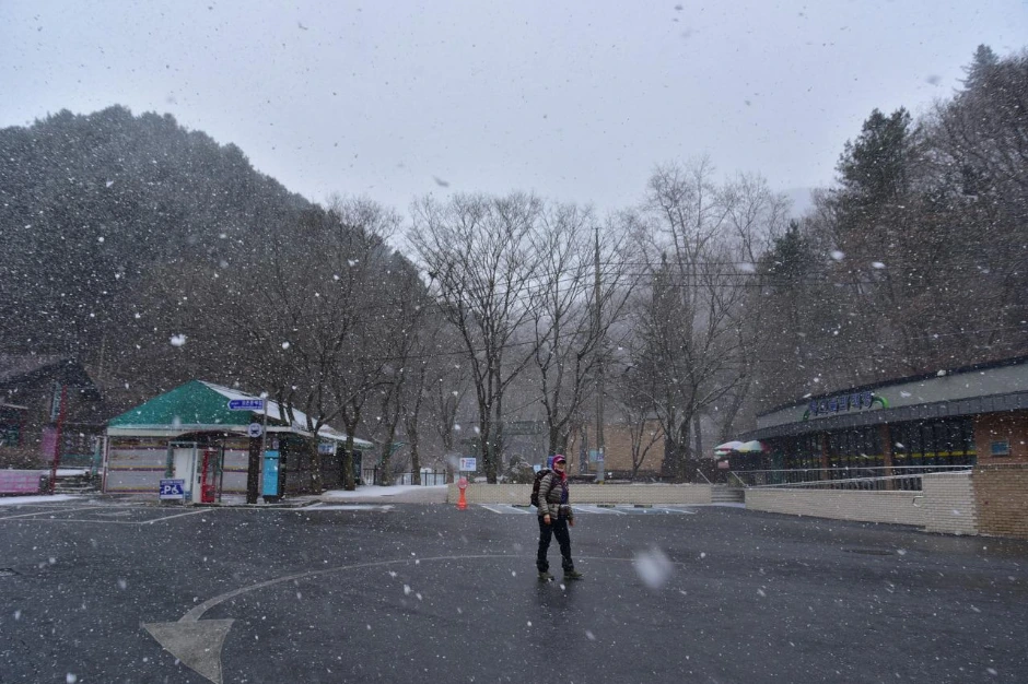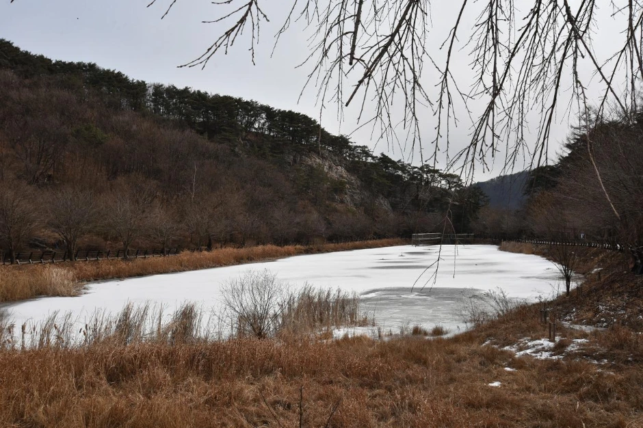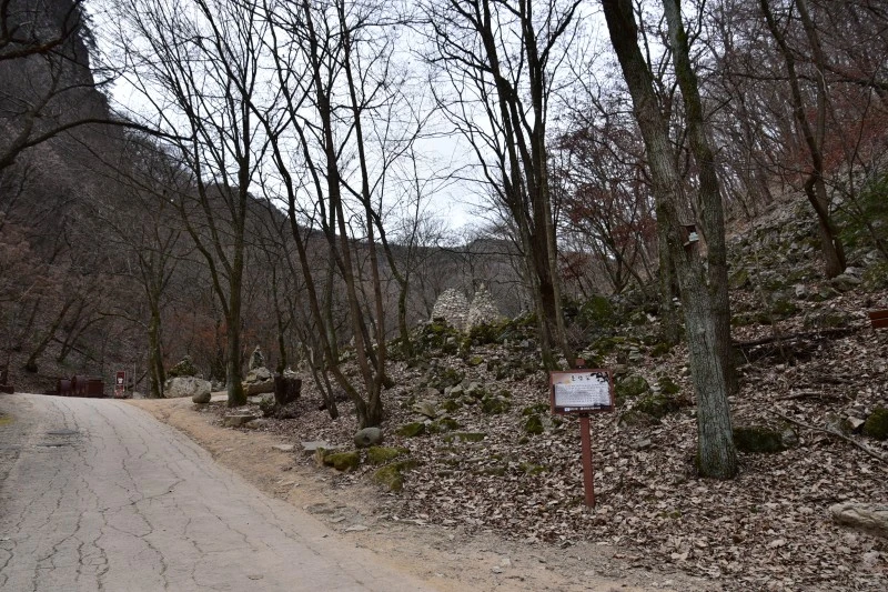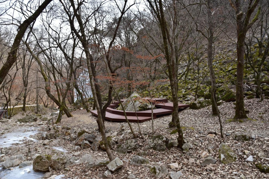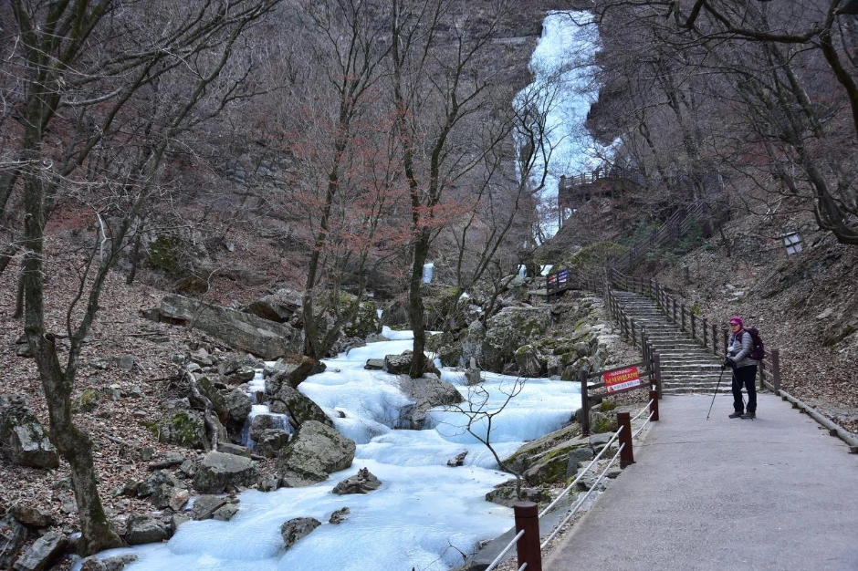 구곡폭포는 여전하였지만 길은 많이 달라져 있었다. 아이젠이 필요하던 얼음길은 나무 계단으로 잘 정비되어 있어서 구두 신고 온 관광객이 있을 정도였다.