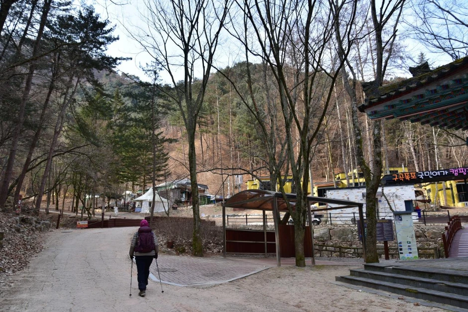 옛 추억을 생각하며 구곡폭포에서 잠시 시간을 보내고 드디어 깔딱고개(깔덕고개라고 부른다고 한다.)를 넘어갈 차례다. 오르막은 늘 힘들다. 스틱에 의지하며 힘들게 걸어가는데, 비닐봉지를 들고 내려오는 부부가 밝은 목소리로 인사를 한다. 동네 주민인 모양이다. 관광지라 아무래도 쓰레기가 발생하기 마련인데 깨끗한 길을 유지하기 위해서 매일 운동 겸 봉사를 하는 것 같았다. 좋은 일을 하는 사람들답게 표정도 목소리도 밝았다.