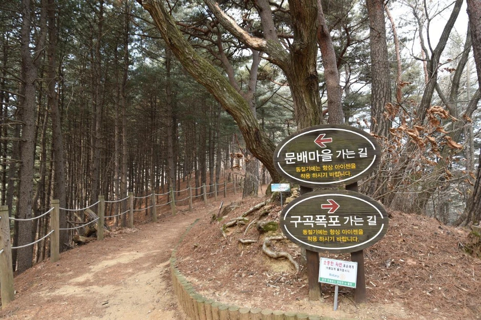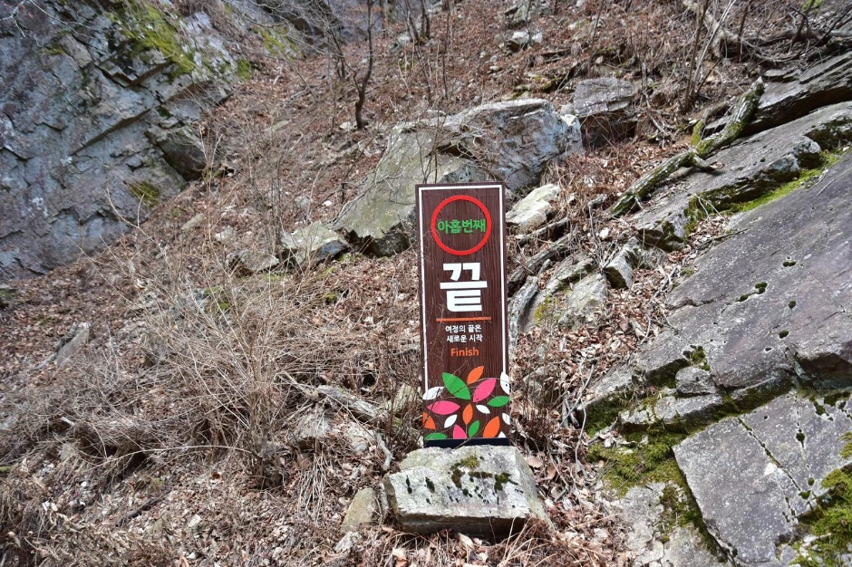 구곡폭포 가는 길에 9가지 글자판을 세워 놓았다. 쌍기역으로 시작하는 글자 9개를 찾아다니느라 걷는 길이 더욱 재미있었다. 글자마다 붙여놓은 뜻이 담긴 글귀가 인상적이다. 꿈 - 희망을 찾아서 끼 - 재능의 발견 꾀 - 일을 잘 해결하는 지혜 깡 - 마음에서 솟구치는 용기 꾼 - 한 분야의 최고봉 끈 - 삶 속에서 맺어지는 관계 꼴 - 누군가에게 보여지는 모습 깔 - 빛깔이나 맵시가 곱고 산뜻함 끝 - 여정의 끝은 새로운 시작 나는 개인적으로 '끝'에 대한 내용이 제일 좋았다. 오랫동안 몸담았던 직장에서 은퇴하여 끝이 났지만, 그게 끝이 아니라 제2의 인생 - 새로운 시작이 아닌가. 우리의 새로운 여정은 이렇게 계속될 것이다.