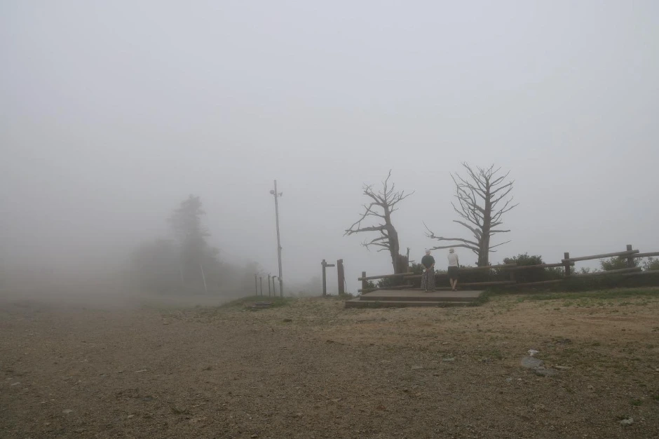 참 긍정적인 사고방식이라고 하면서 남편과 웃었다. 안갯속의 설천봉이 신비스럽다.