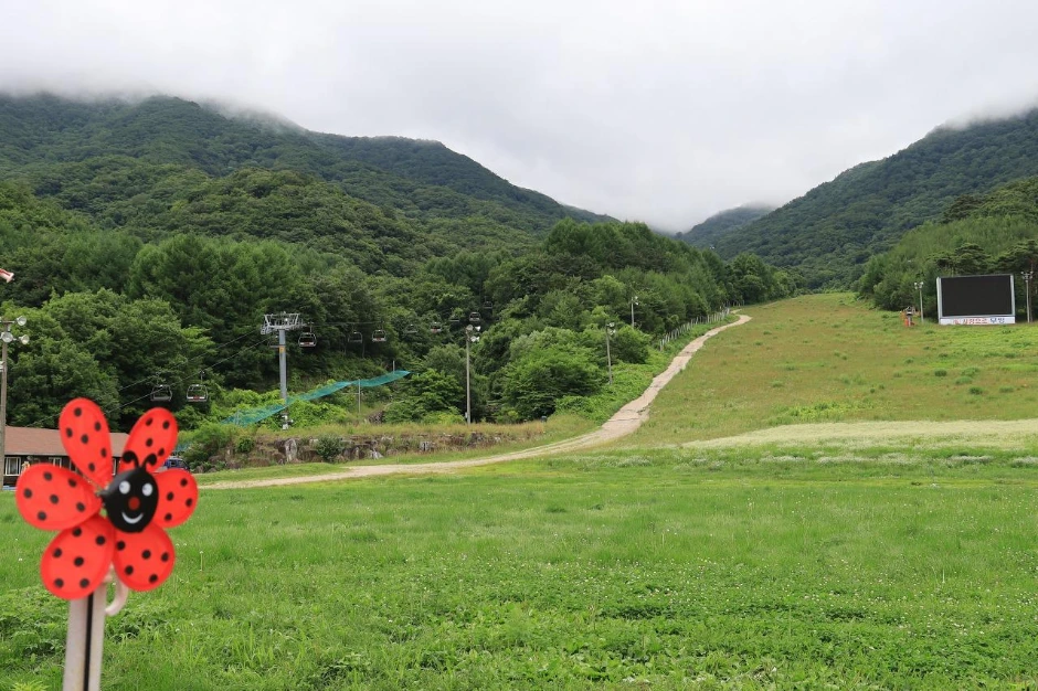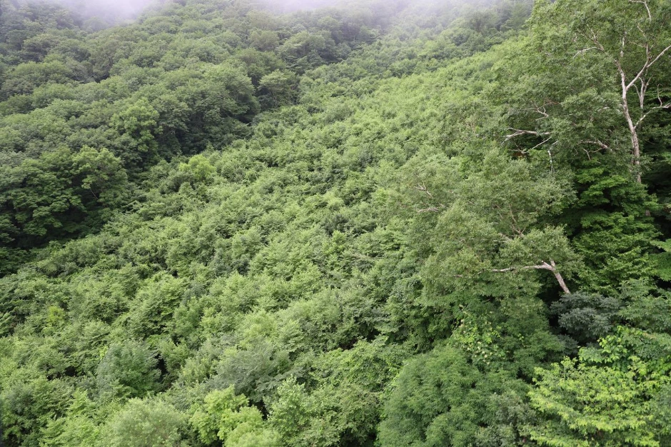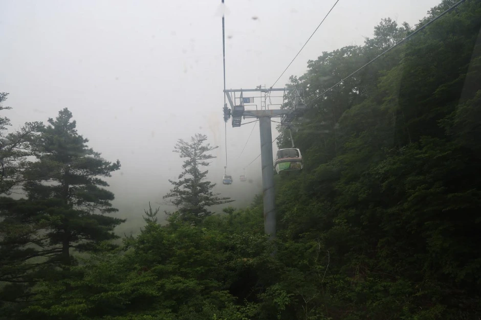 곤돌라에서 아래를 내려다보니 초록이 빽빽하다. 그 사이 서울에는 비가 제법 왔는데, 여기도 비가 좀 왔는지 궁금했다. 봄에서 여름 넘어가는 사이에 가뭄이 너무 심해서 산에 나무들까지 몸살을 심하게 앓았다. 다행히 나무들은 생기가 있어 보였고, 열린 창문 사이로 작은 계곡의 물소리가 경쾌하게 들렸다.