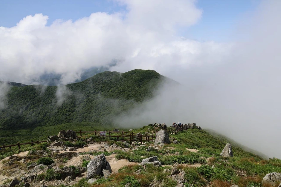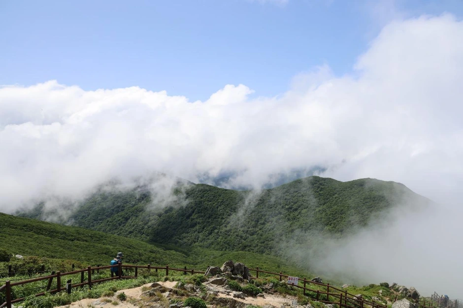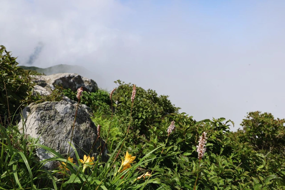 원추리 만나러 갔다가, 여러 가지 야생화를 만나고, 구름의 향연까지 감상하고 온 덕유산 트레킹은 총 4km, 3시간이 걸렸다. 멋진 구름 위의 산책이었다. 잠깐 보여준 파란 하늘은 우리를 위한 선물이었다. (2022.7.9)