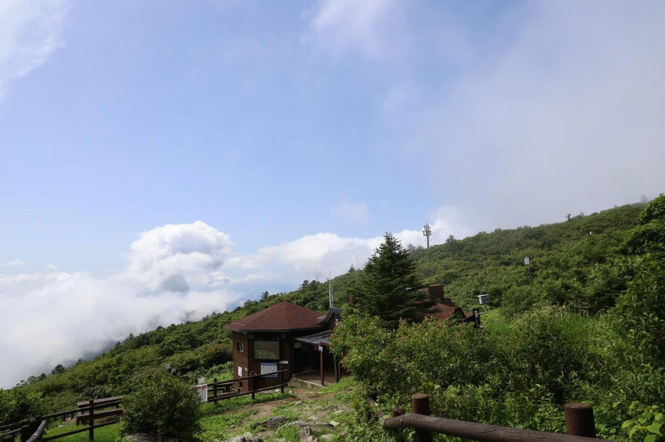 향적봉에 도착하니 파란 하늘이 드러나기 시작한다. 다행이다.