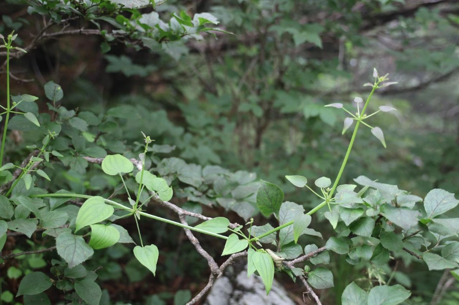 미역줄나무가 한창 꽃을 피우고 있다. 미역줄나무는 넝쿨식물이다.