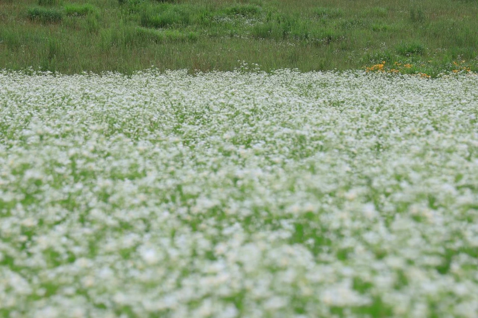 멀리서 보니 개망초나 메밀꽃이나 비슷한 느낌이다. 개망초 밭이 네모 반듯한 것을 보니 자연적으로 난 것이 아니라 일부러 조성한 듯하다. 좋은 아이디어다.