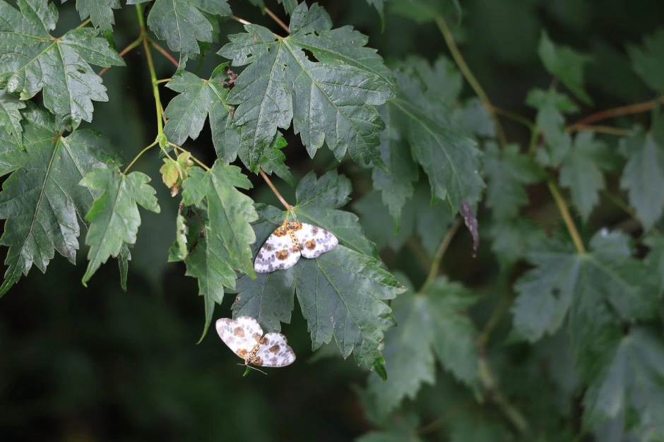 나방 이름을 검색해보니 '각시얼룩가지나방'이라는이름의 나방과 흡사하였다. 나뭇잎에 붙어서 살았는지 죽었는지 알 수 없었는데, 건드리지 않고 물러나왔다.