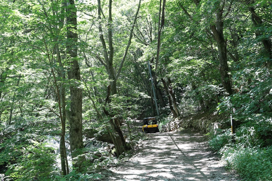내려오는 길에 강선마을로 가는 사발이 차를 만났다. 비포장 등산로에서 아주 유용해 보인다.