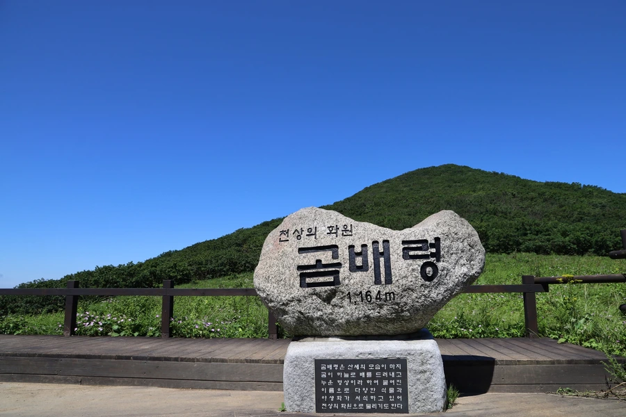 천상의 화원, 죽기 전에 꼭 가봐야 할 곳 등. 곰배령에 대한 수식어가 화려하다. 강원도 인제군에 위치한 곰배령(1,164m)은 곰이 배를 하늘로 향해 누워있는 모습을 하고 있다고 해서 붙여진 이름이라고 한다. 주차장에 있는 화장실도 누워있는 곰의 모양으로 만들었다.