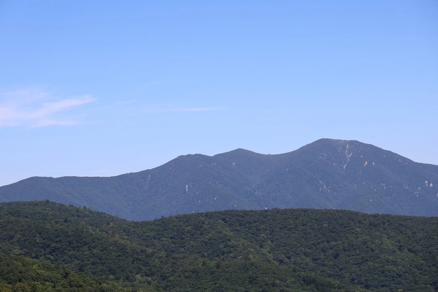 설악산을 당겨 찍어 보았다. 끝청, 중청, 대청봉이 한 눈에 들어온다. 제일 높은 곳이 대청봉이다.