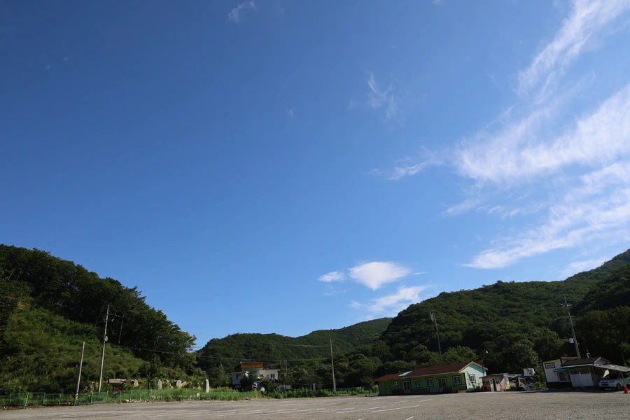 우리가 찾은 날이 8월 12일 금요일이었는데, 주차장 위로 파란 하늘이 우리를 반겼다. 정말 행운의 날씨다.