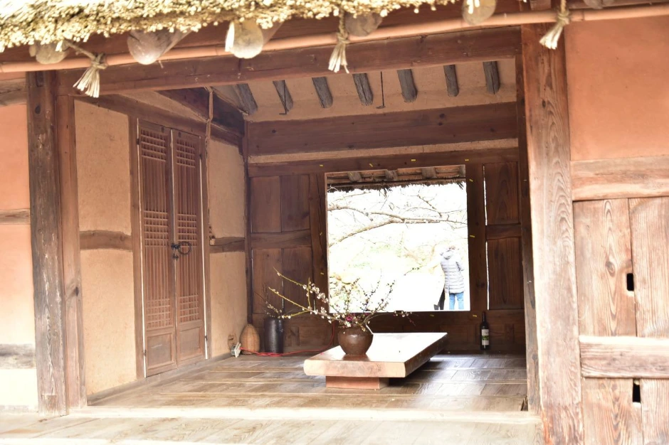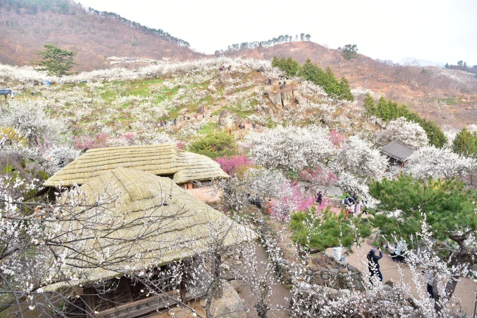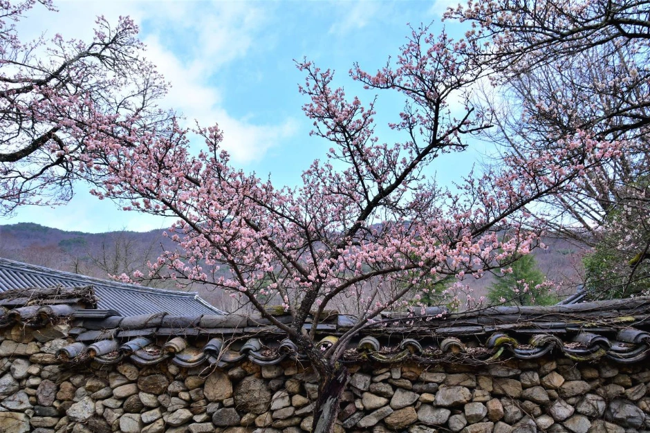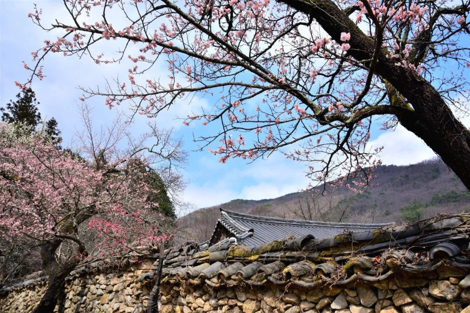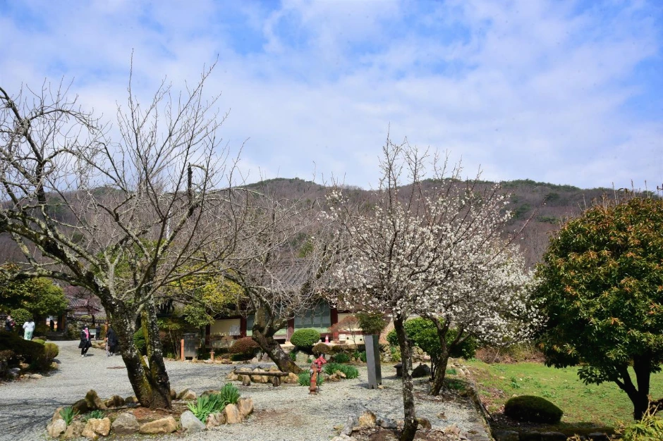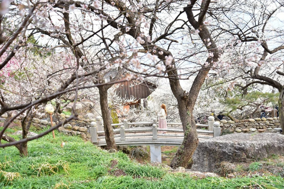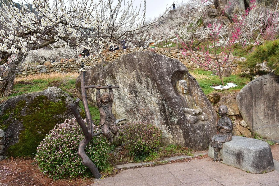 때가 피크인 만큼 손님들이 많다. 모델을 동반하고 온 사진작가들의 출사가 있는 모양이다. 멋진 뷰 포인트에는 여러 명의 사진작가들과 모델들을 볼 수 있었다. 차마 직접은 찍지 못하고 슬쩍 멀리서 그들의 감각을 담아 몇 장 찍어 보았다. 정자, 초가집, 기와집, 여기저기 흩어져있는 바위조차도 매화와 어울려 한 폭의 그림을 만들어 낸다. 가슴 아픈 오세암 이야기의 조형물도 매화 꽃 속에 그 자리 그대로다. 하늘도 예쁘고, 풍경도 예쁘고. 한참을 그냥 보고만 있어도 좋은 그곳에 우리도 하나가 된다.