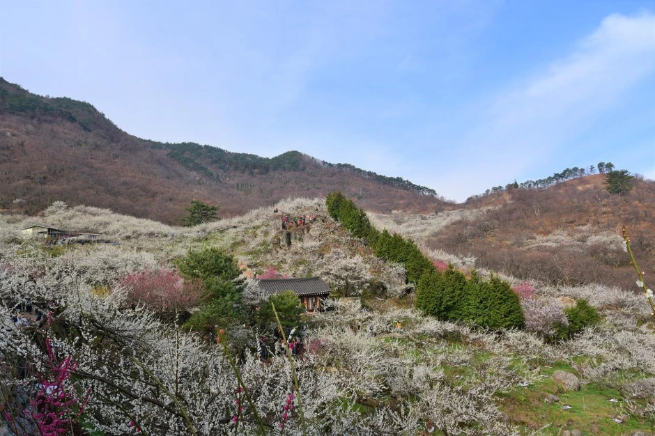 사람이 많은 곳을 별로 좋아하지 않는 우리는 산행도 사람들이 많이 가는 곳이나 시간대를 피하려고 애쓴다. 하지만 여기는 사람이 많아도 워낙 넓어서 별로 문제가 되지 않는다. 청매실 농원은 45만 평 (약 1.5㎢)의 넓이에 십만 그루가 넘는 매화나무가 심어져 있다고 한다. 건물이 많이 몰려있는 중심 지역에서 벗어나 높은 곳으로 조금만 올라가면 한적한 곳도 많다. 정말 매화꽃도 실컷 보고 매화 향기에 듬뿍 취할 수 있는 아름다운 곳이다. 광양 매화마을 꽃 잔치에 우리는 그렇게 폭 빠졌다.
