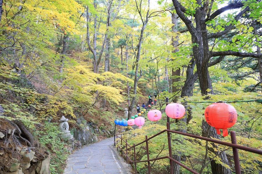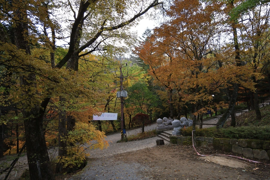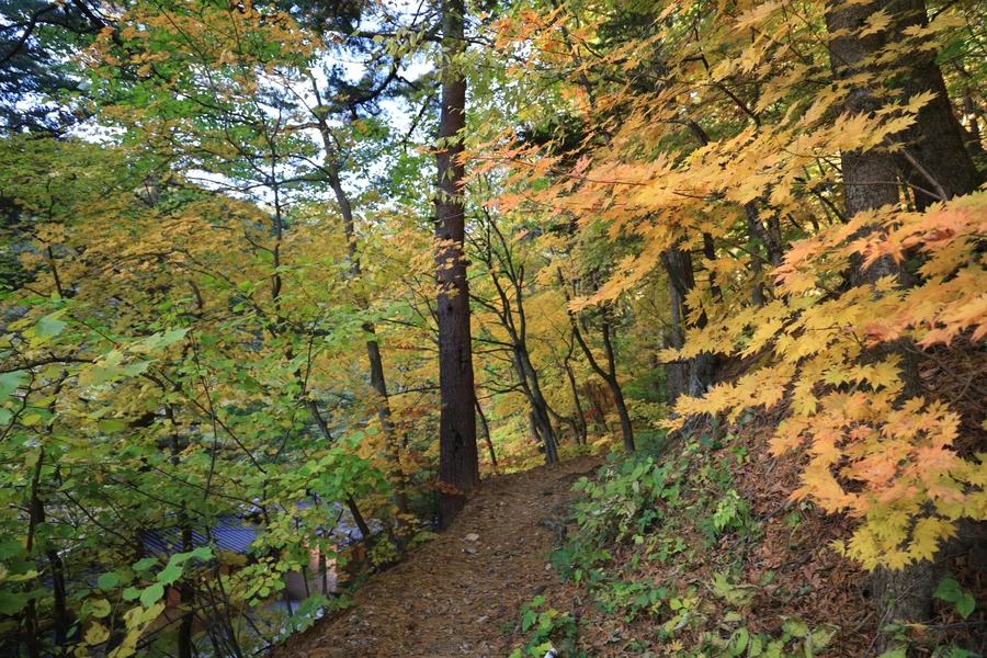 상원사로 올라가는 길이 새로 단장된 듯하여 넓은 도로로 가지 않고 그길로 들어섭니다. 여름 내내 푸르던 잎들이 단풍 들 준비를 하느라고 연두빛으로 살짝 변하는 중이네요. 이곳까지 완전히 단풍이 들려면 조금 더 시간이 필요할 것 같습니다. 단풍나무가 많은 곳이라 완전히 물들면 정말 예쁜 곳인데 살짝 아쉽네요.