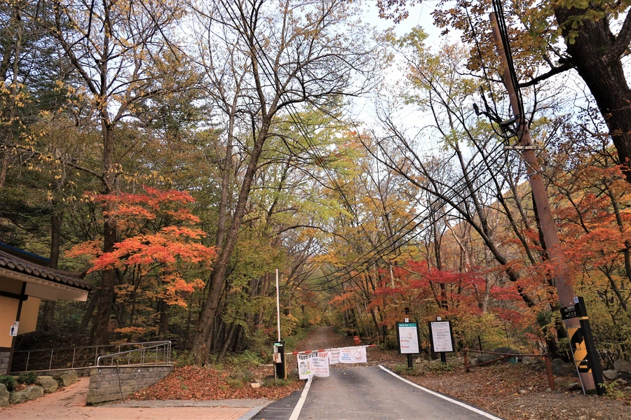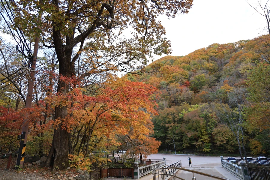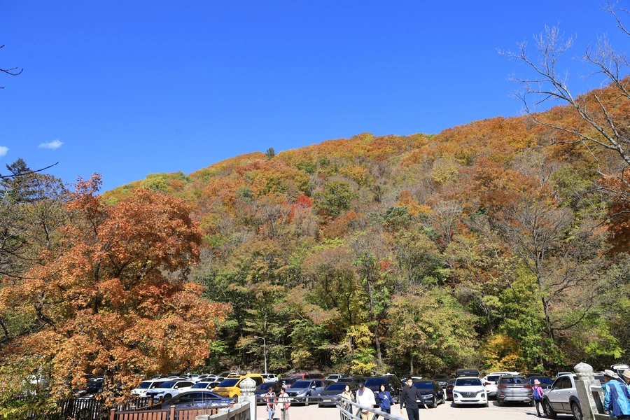 날이 밝아지면서 주변을 살펴보니 주차장 주변이 이미 단풍으로 멋지게 물들었습니다.