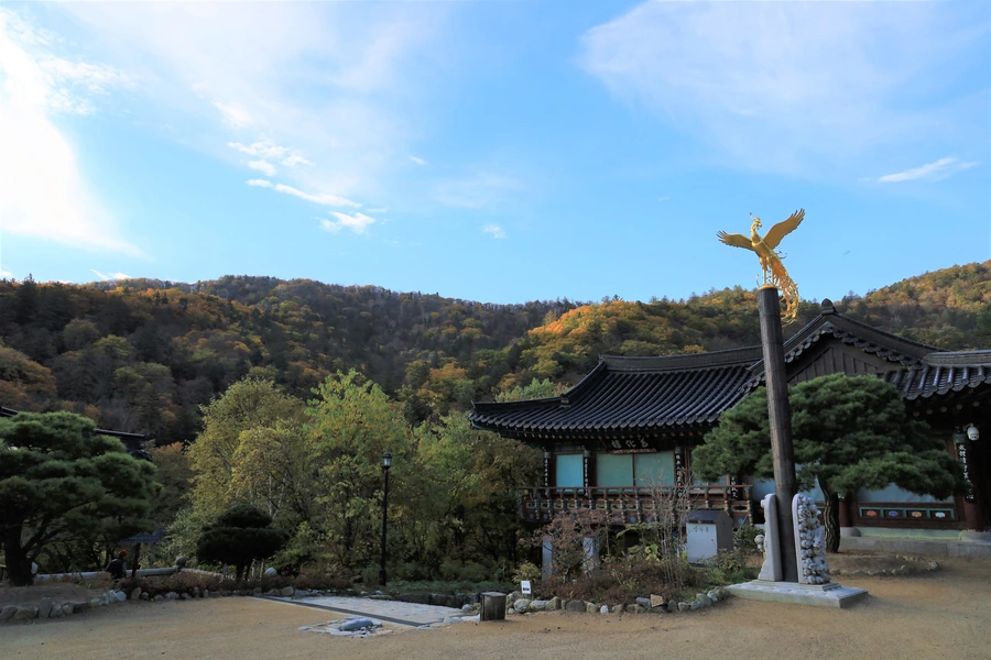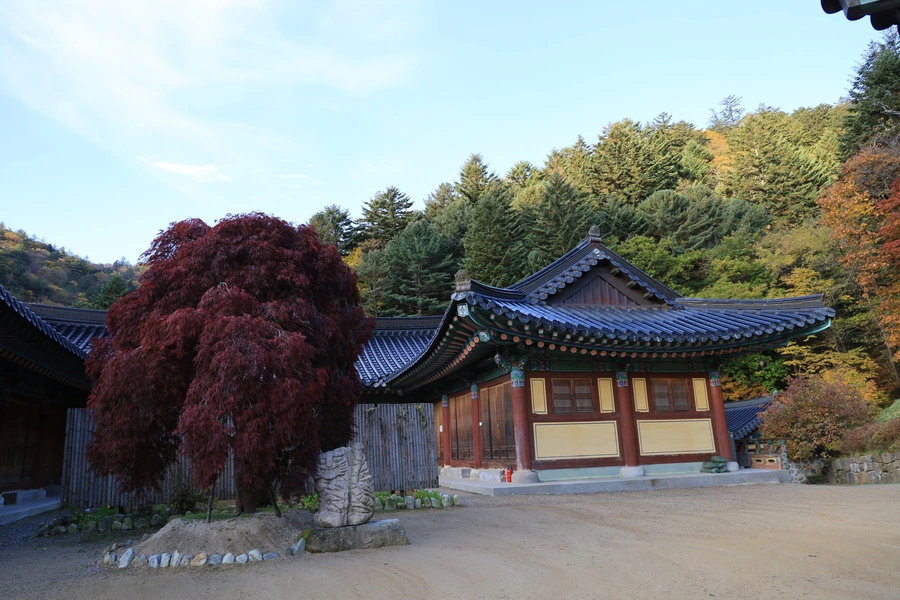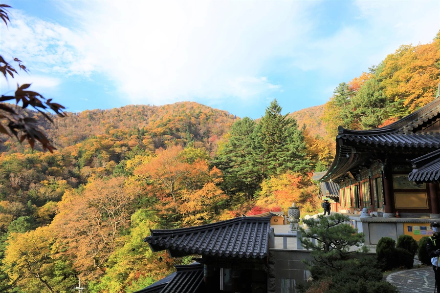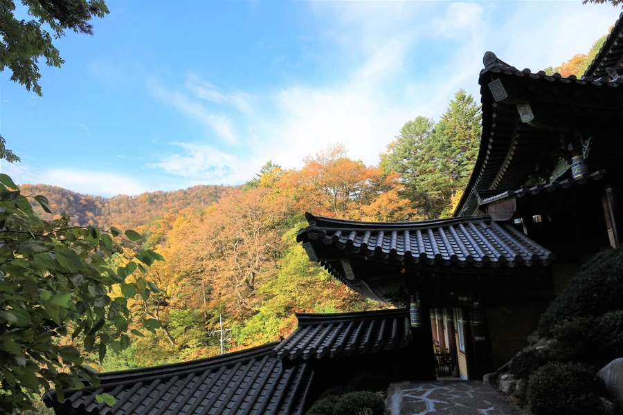중대사자암은 기와가 연속되어 있는 모습이 멋있더군요. 이번에는 하늘과 단풍이 어울려서 더 멋진 장면입니다.