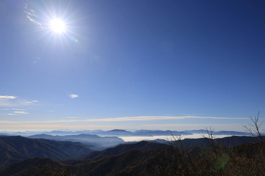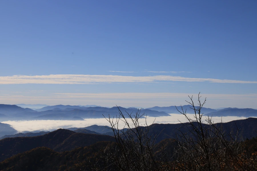 산 저쪽에 무슨 호수일까요? 아니면 바다? 하얀 구름이 바다처럼 있는 것을 운해라고 한다지요. 호수 같으면 운호일까요?
