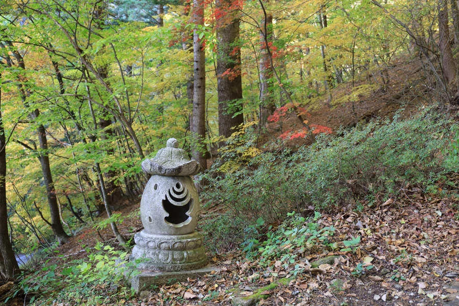 중대사자암과 적멸보궁까지 중간중간에 석등이 놓여 있습니다. 석등인 줄 알았는데, 안에 스피커가 있는 것도 있습니다. 걷는 내내 청아한 목소리의 불경 외는 소리가 발맞추어 걷게 하네요.