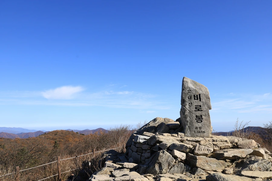오대산이 다섯 봉우리가 있어서 오대산이라고 한다는 것을 이번에야 알았습니다. 비로봉(1,563m)을 비롯하여 상왕봉, 두로봉, 동대산, 호령봉 등 5개의 봉우리가 있다 하여 오대산이라고 하였다는데, 모두 1,400m가 넘는 봉우리들입니다.