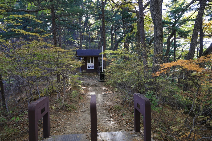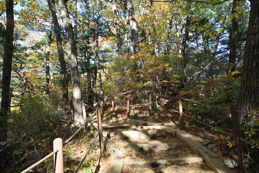 봄, 가을철 산불 예방기간이 되면 통제를 하는 산림감시 초소를 지나 드디어 계단을 오릅니다.