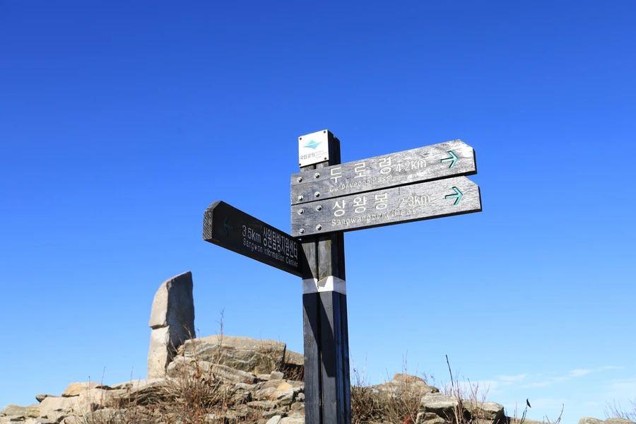 정상의 모습은 이미 겨울입니다. 하늘은 눈이 시리도록 파란색이네요.