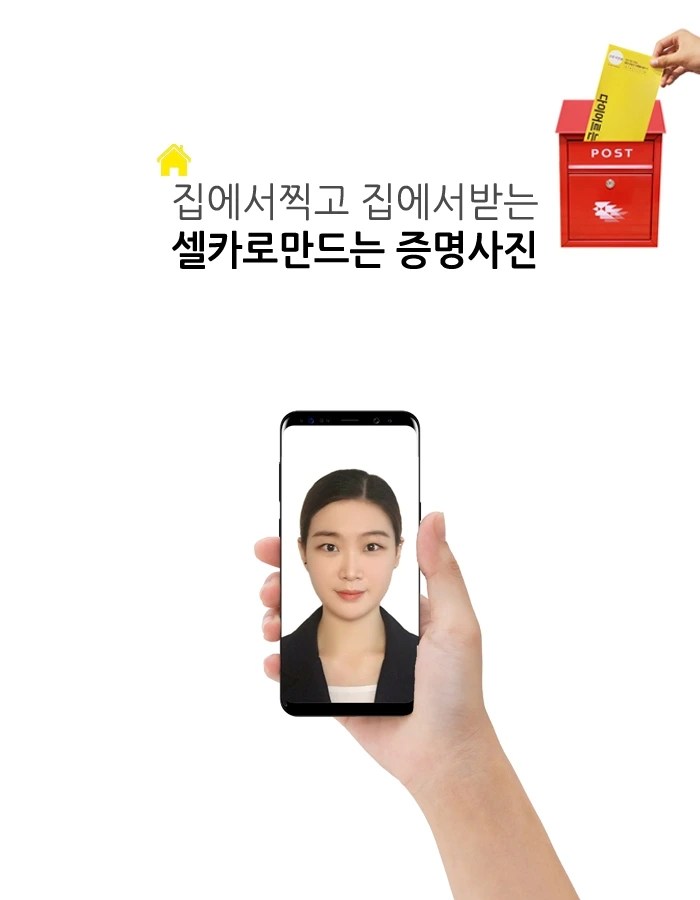 상품을 기획하고 만들어본 광고물(휴대폰으로 직접 셀카를 찍고, 집에서 받아보는 셀프 증명. 여권사진 상품)