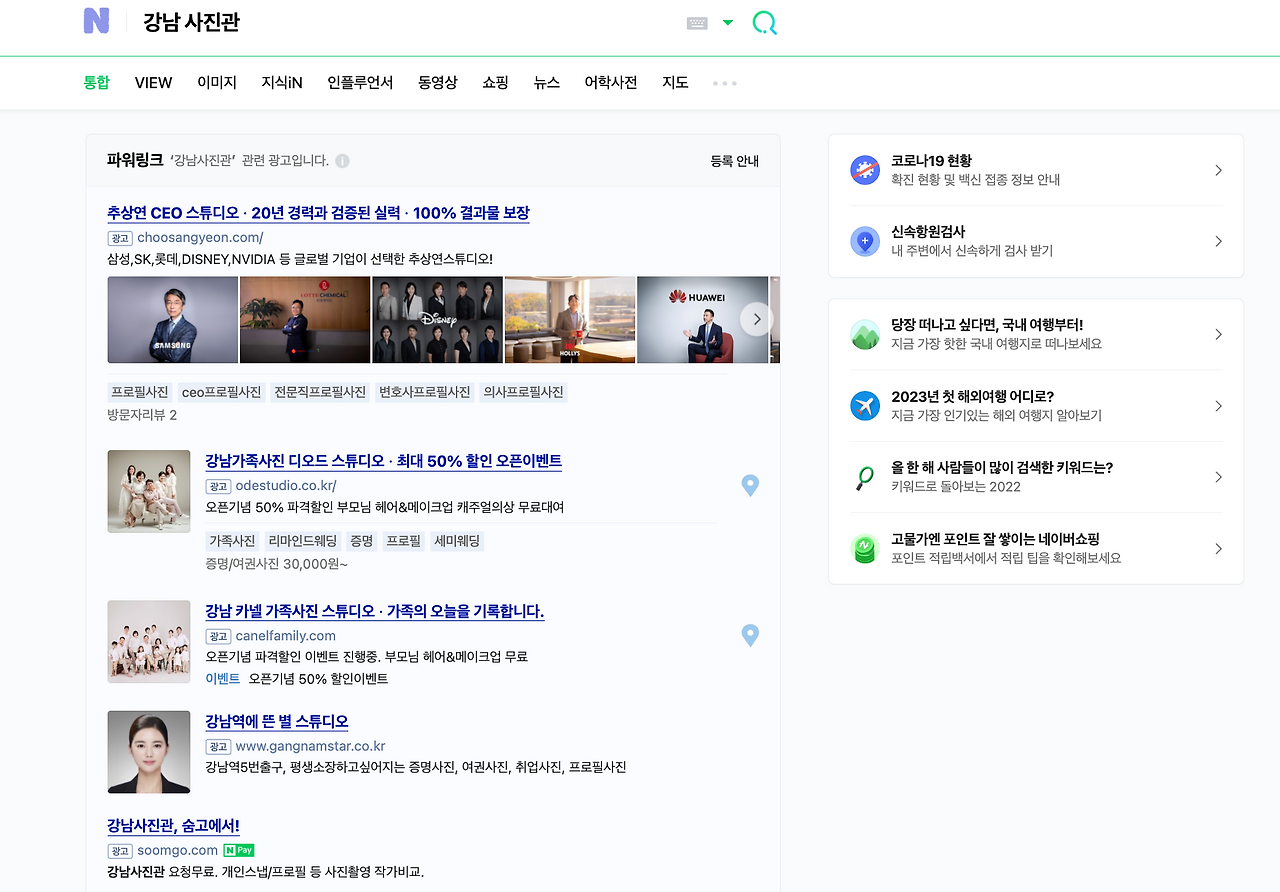 광고의 목적은 인터넷 어느자리에 우리사진관이 보여지는게 아니라, 매장에 고객이 찾아오거나, 전화로 사진 예약을 하는 목적이 아닙니까?