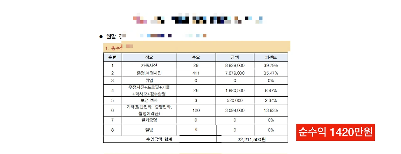 15년동안 사진관을 운영하면서 광고회사에게 가져다 준돈 5억