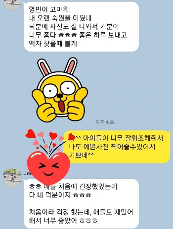 촬영후 친구에게 온 카톡.