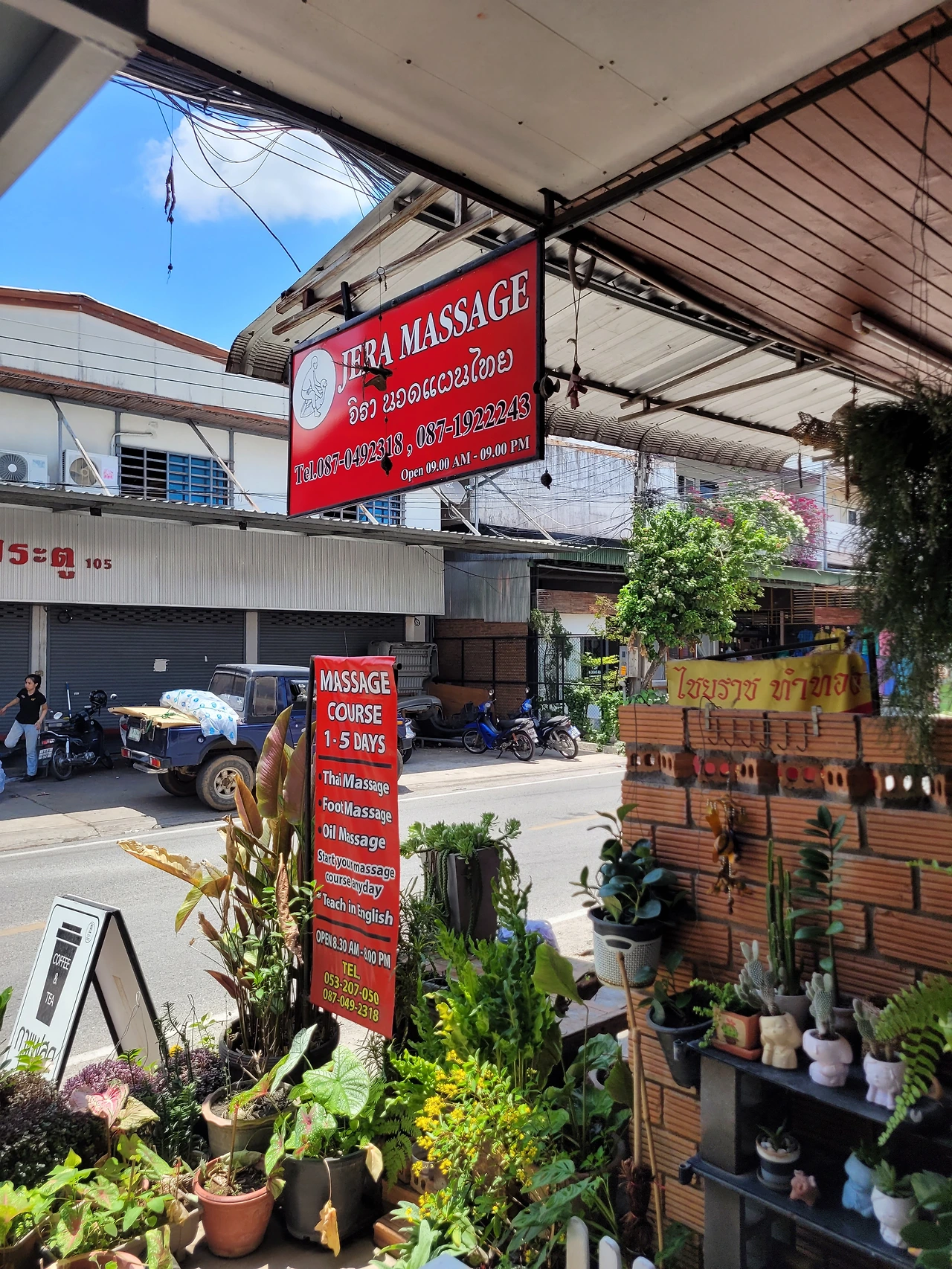 마사지 스쿨을 찾다가 유튜브에서 '제라 마사지'라는 업체를 발견했다. 후기를 보니, 다른 곳보다 가격이 비싸지 않으면서 소규모라 마음에 들었다. SNS로 연락해서 미리 예약을 잡았다. 원래는 하루 전에 학원에 방문해서 결제를 해야 했지만, 짧은 내 여행일정을 배려해 주셨다. 당일날 바로 현장결제를 하고 수업을 듣기로 했다. 나는 타이마사지 3일 코스를 신청했다. 수강료 2800밧(한화 약 11만 원). 아침 9시 30분부터 3시 30분까지 강습을 듣는다. 중간에 점심시간이 있는데, 학원에서 점심을 준비해 주신다.