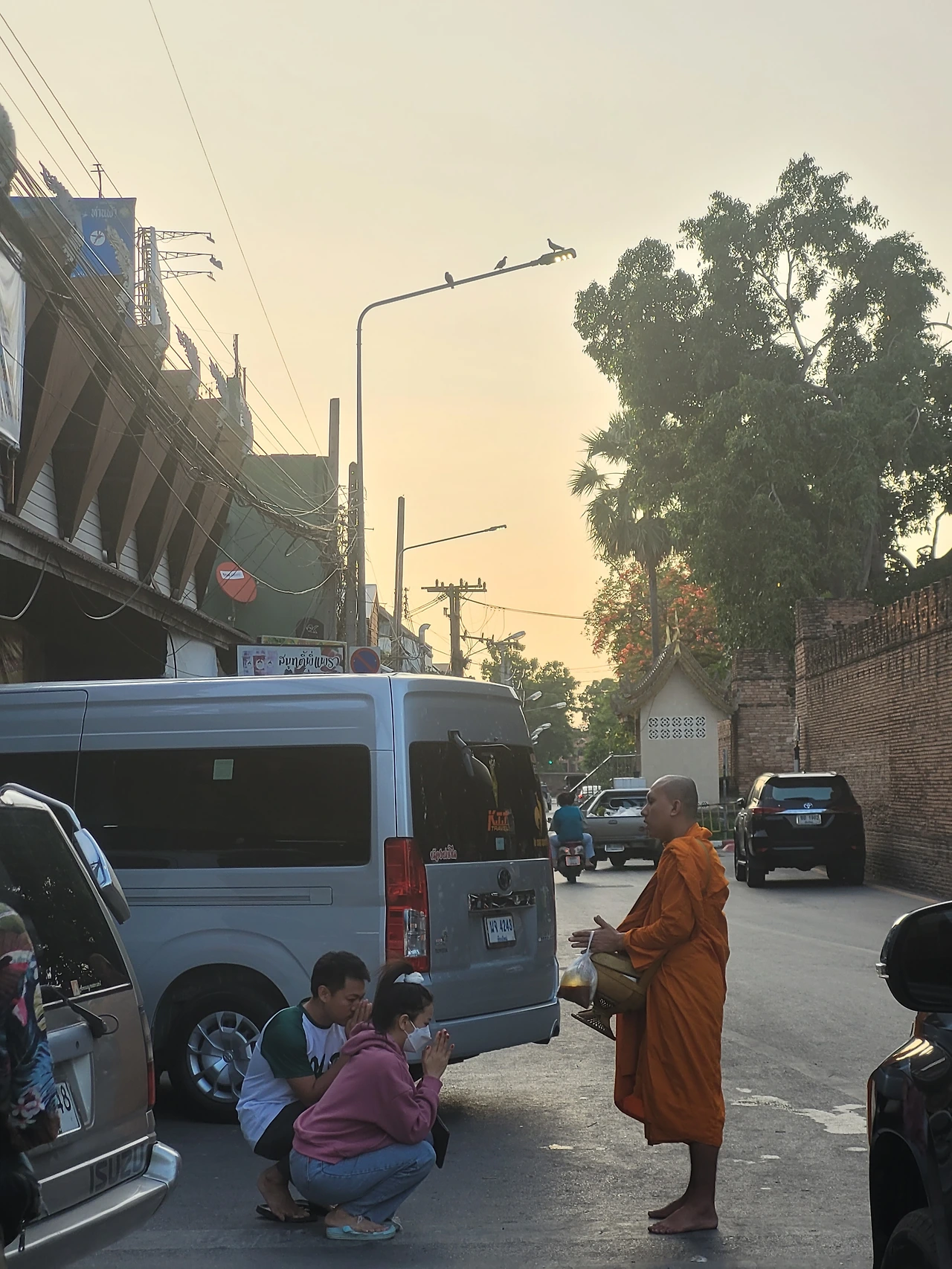 한국에서는 스님이 길에서 공양하는 모습을 볼 일이 없다. 조계종 차원에서 국민들의 부정적인 인식, 가짜 스님의 사기행각 등을 이유로 자체적으로 금하고 있기 때문이다. 반면 동남아 불교권에서는 새벽 탁발공양이 보편적으로 이뤄지고 있다. 동남아 안에서도 모습에 차이가 있다. 캄보디아의 새벽 공양은 대로에 스님이 줄지어 걸어간다. 그래서 하나의 의식처럼 느껴진다. 반면, 태국의 모습은 일상 같다. 스님들이 자유롭게 골목을 거닌다. 그래서 공양을 원하는 신도들은 굳이 스님을 찾으려고 애쓰지 않아도 된다. 구석구석 동네를 스님들이 누비고 있기 때문에!