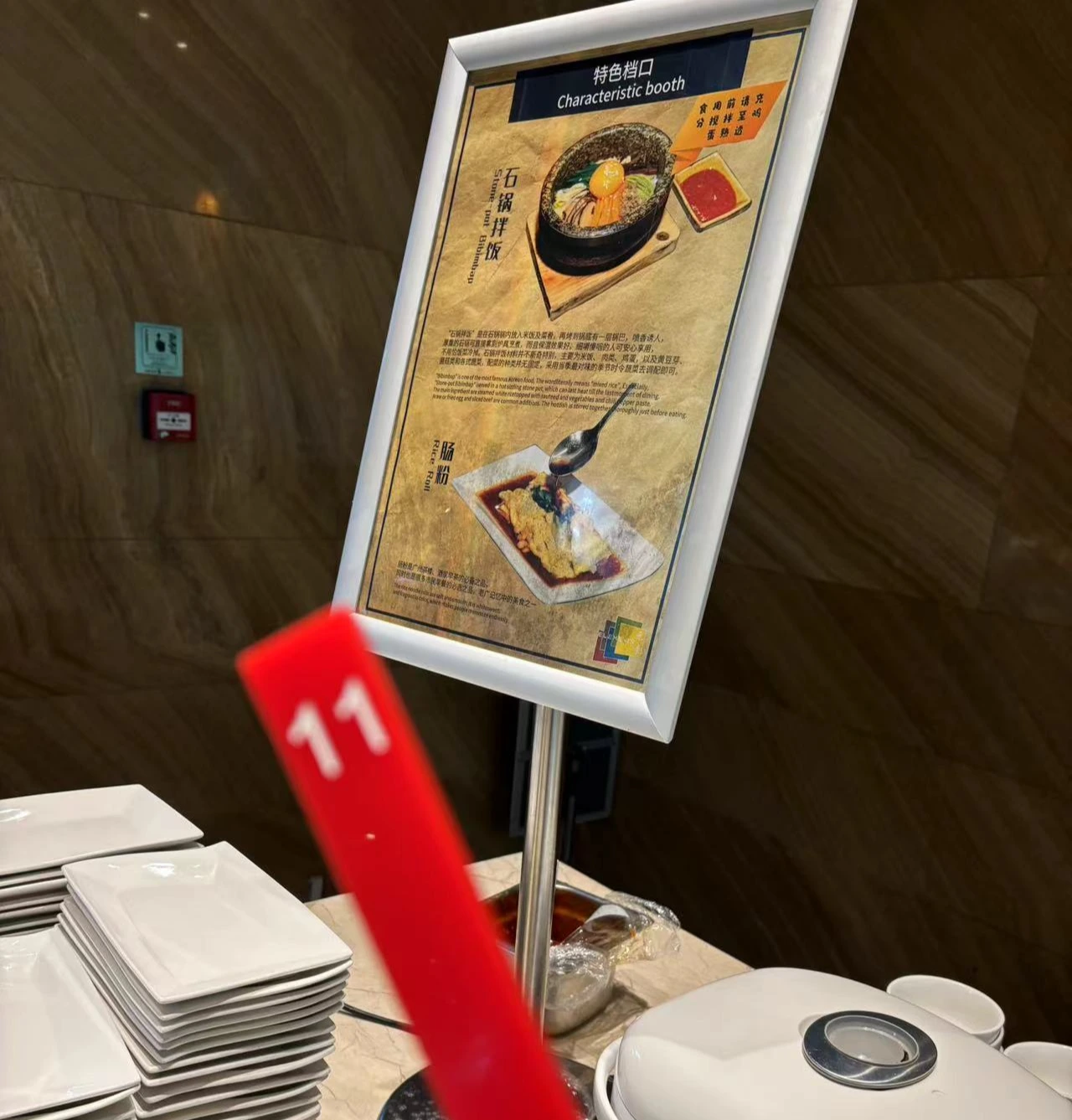 이것을 들고 요리 코너로 가서 원하는 메뉴를 주문하면 즉석에서 조리가 시작한 후, 각 숫자 막대에 써진 테이블 번호로 서빙이 된다. 오랫동안 중국에 살면서 한식에 대한 그리움이 컸기에, 우연히 만나게 된 빨간 막대가 마치 소원을 말하면 들어주는 도깨비방망처럼 느껴졌다.