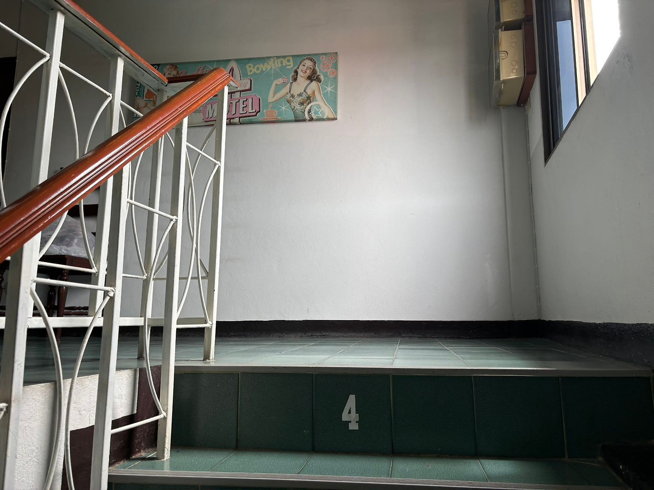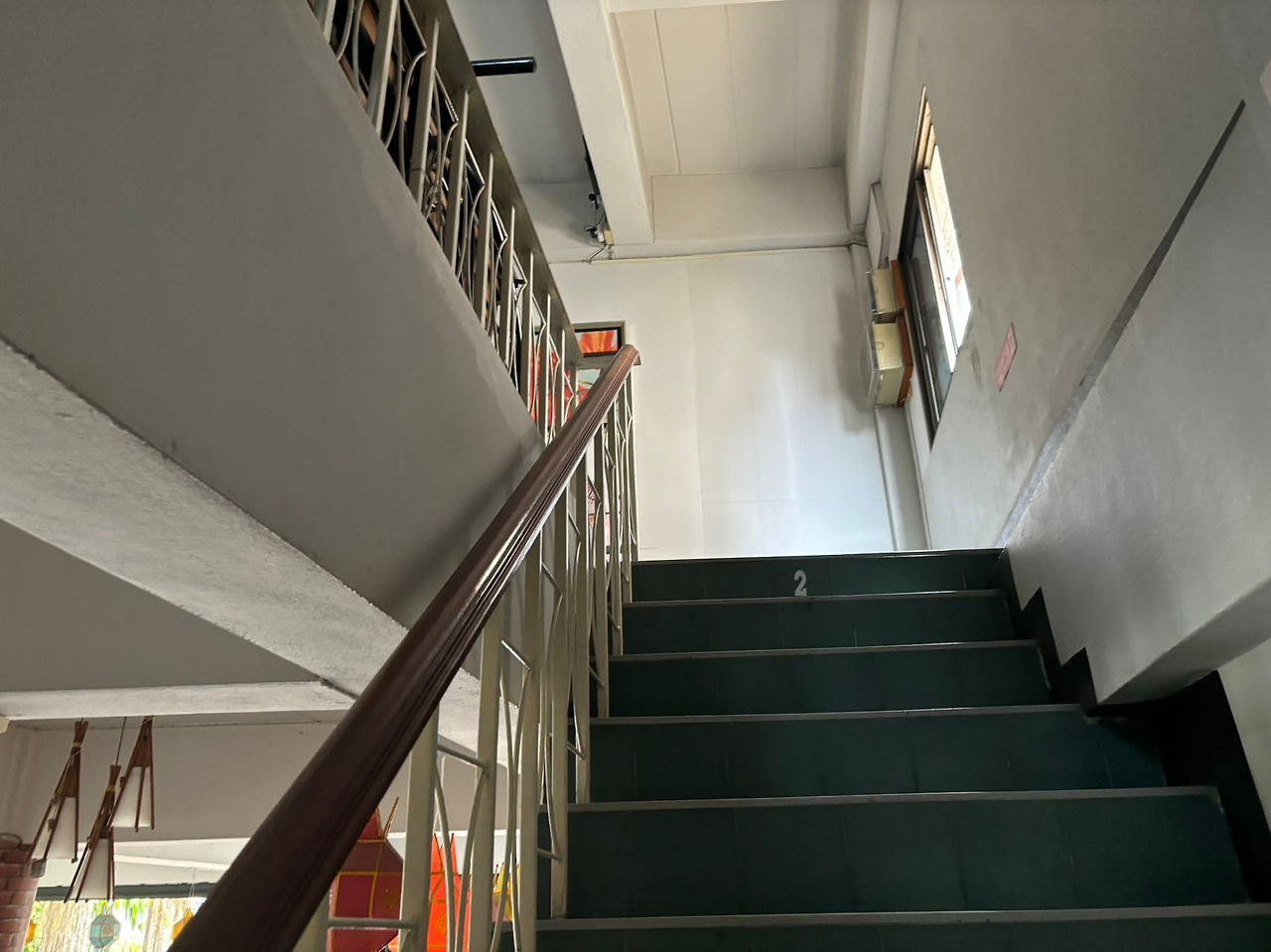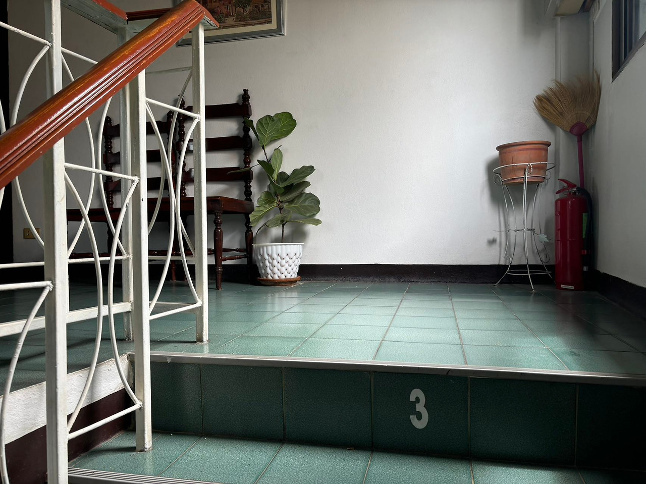 계단에 2층, 3층을 알려주는 숫자가 있다.