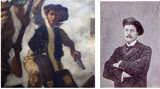 그림에서 중심에 있는 여성 마리안느의 왼쪽에 두 명의 남성이 등장한다. 먼저 높은 모자를 쓰고 양복을 입고, 흰 와이셔츠에 넥타이를 맨 장총을 든 남성이 보인다.