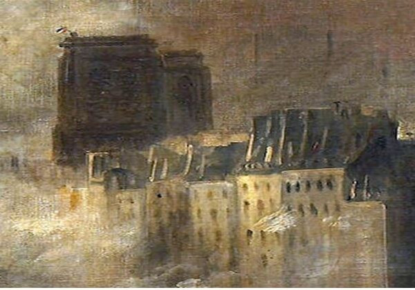 또 하나의 상징은 노트르담 대성당이다. 시위로 인해 도시를 뿌연 안개가 자욱한 모습으로 표현한 것은 불확실한 승리에 대한 복선적 성격을 나타낸다고 볼 수도 있지만, 노트르담 대성당에 보일 듯 말 듯 펄럭이는 삼색기는 민중들의 승리를 확인하는 상징이다.