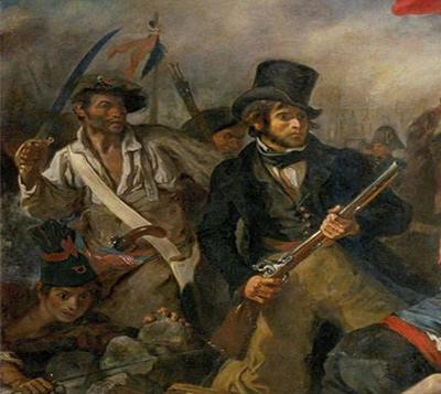 '민중을 이끄는 자유(La Liberté guidant le peuple )'는 들라크루아가 1830년 절대왕정 복원을 꿈꾸던 샤를 10세를 몰아내고 루이 필립이 왕위에 오르면서 입헌군주제의 기틀을 마련하는 프랑스 7월 혁명 당시 ‘영광의 3일’을 표현한 작품이다.