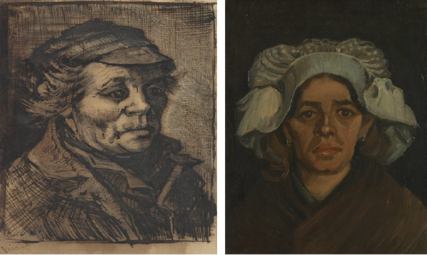 반 고흐, 남자의 두상,1885(왼쪽) 여자의 두상,1885(오른쪽)