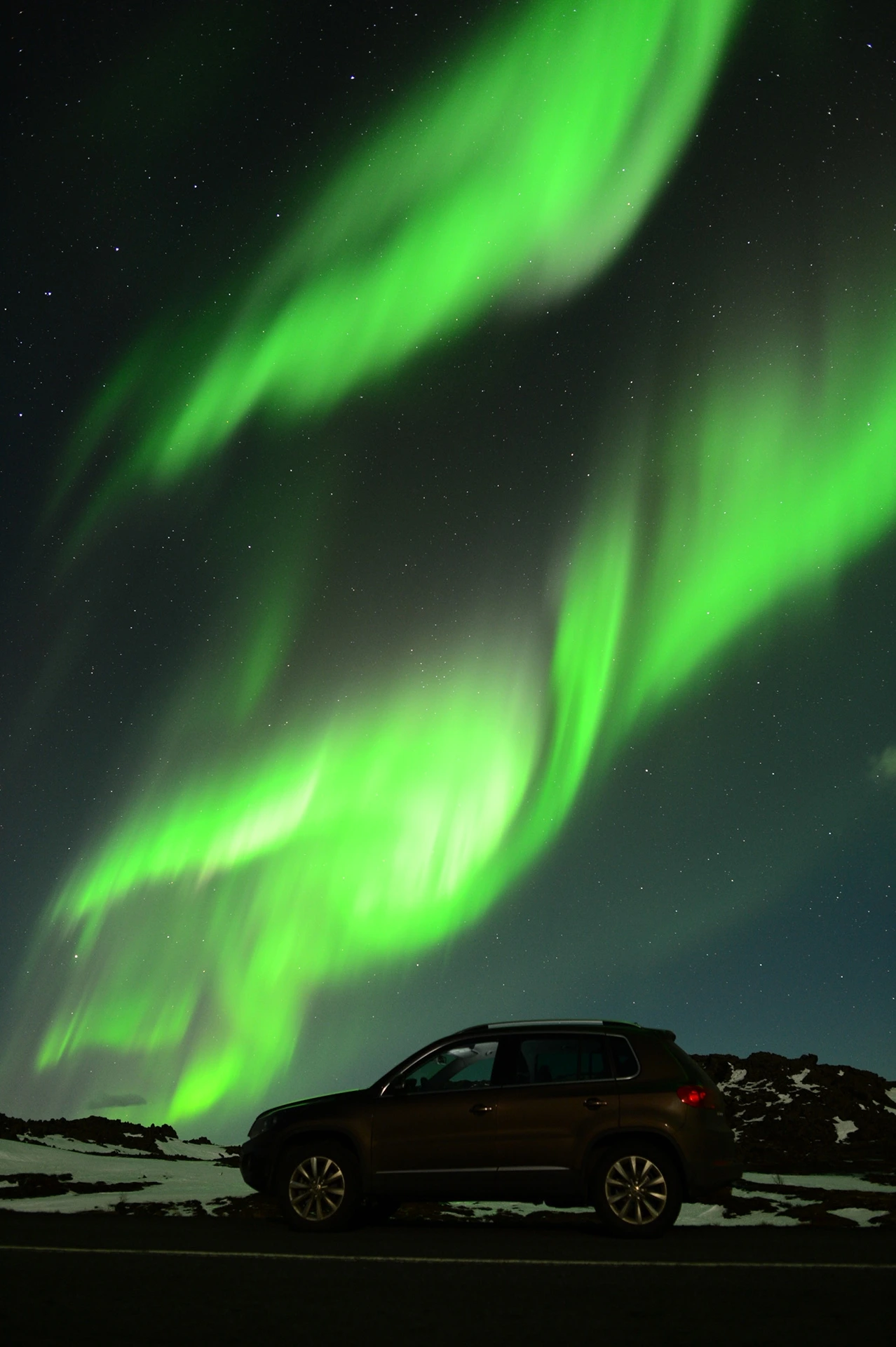 오로라가 나타나자마자 J는 호수에 반영된 오로라를 촬영하겠다며 차를 몰고 호숫가로 내려갔다.