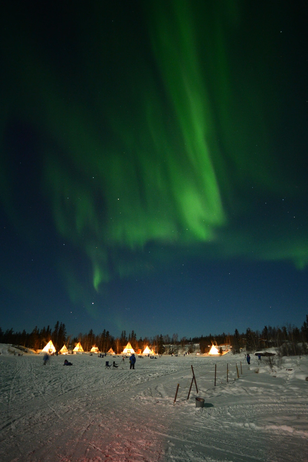 칼바람은 없어도 하늘이 열리며 다가온 차가운 고기압의 영향으로 순식간에 대지가 얼어붙기 시작한다. 영하 20도를 넘어섰다. 이렇게 추워야만 오로라를 볼 수 있는 것이다. 1월의 영하 30도~40도 추위에서 오로라를 정신없이 보다가 동상에 걸리는 경우도 적지 않다고 한다. 한 시간이 넘어서면서 손발이 꽁꽁 얼고 볼이 얼얼해지기 시작한다. 온몸도 얼어붙었다. 오랜 갈망으로 충분히 준비된 사람들에게 추위는 문제가 되지 않는 듯했다. 첫날 오로라를 만났다면 아마도 감동은 적지 않았을까? 오로라를 보며 사람들은 그저 행복해 보였다.