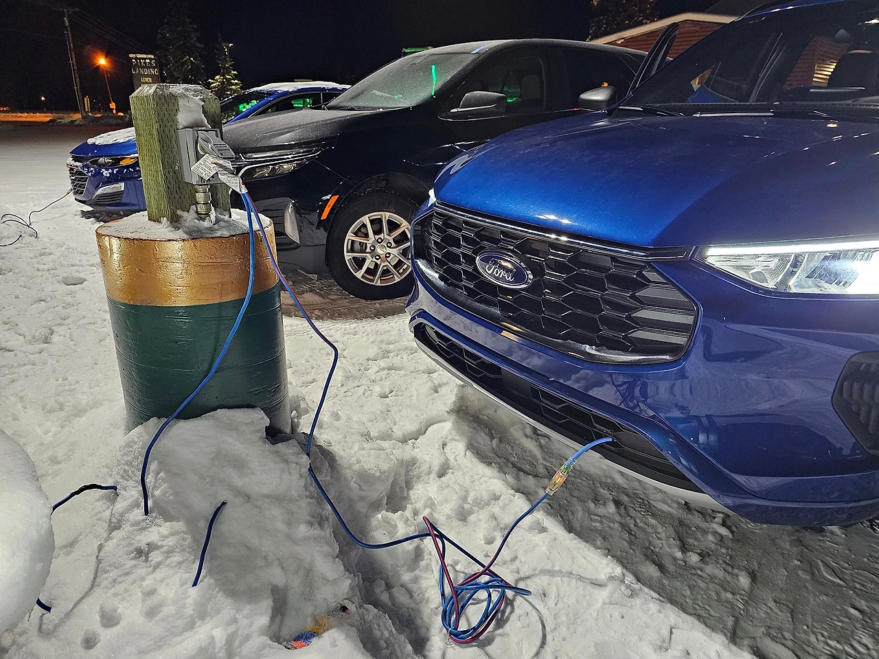 인상 깊은 건 북극 추위에 대비한 시동 보조 시스템이었다. 도착한 호텔에서 주차를 하고 내리려는데 모든 차의 라디에이터 그릴에서 나온 전기코드가 주차장 콘센트에 꽂혀 있다.