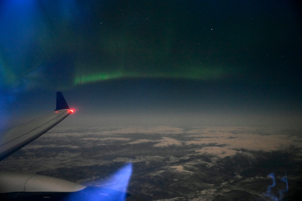 마지막 날 비행기는 새벽 1시 반 출발. 일부러 비행기에서 오로라를 보려고 밤 비행기를 잡았다. 그전까지 마지막 시도를 해보려고 공항에 가기 전 페어뱅크스 시내에서 오로라를 볼 수 있는 장소로 소개된 크리머스 필드로 갔다. 약간의 불빛은 있지만 넓은 들판이라 어디에서 뜨든 보기는 괜찮을 듯했다. 저녁을 먹고 차에서 기다리다 나는 잠이 들었다. 9시경 낮게 살짝 오로라가 나타나는가 싶더니 사라져 버렸다. 이제 미련을 접을 시간. 돌아가는 비행기에서도 창에 비껴있는 오로라가 살짝 보였지만 그 정도는 본 것 같지도 않다.