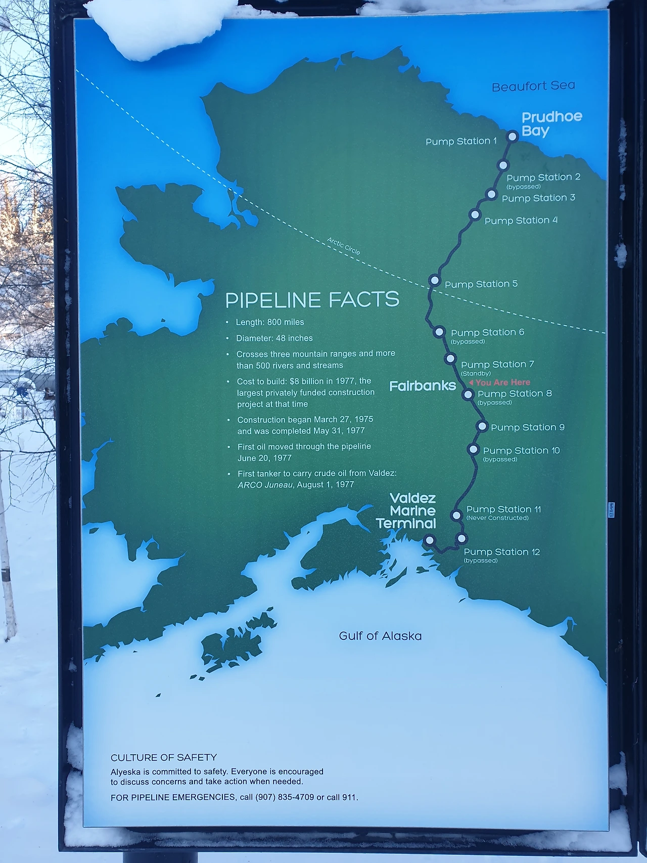 페어뱅크스 근처를 통과하는 알래스카 파이프라인도 흥미로웠다. 1958년 알래스카 최북단 프루도 만에서 석유가 발견되면서 미국은 원유를 운송하는 파이프라인을 계획한다.