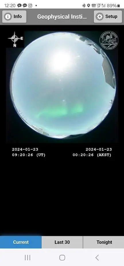 나중에 인터넷에서 알래스카 페어뱅크스 대학의 오로라 실시간 관측 영상을 다시 돌려보니 새벽 5시경에 중간 급의 오로라가 한 차례 왔었다.