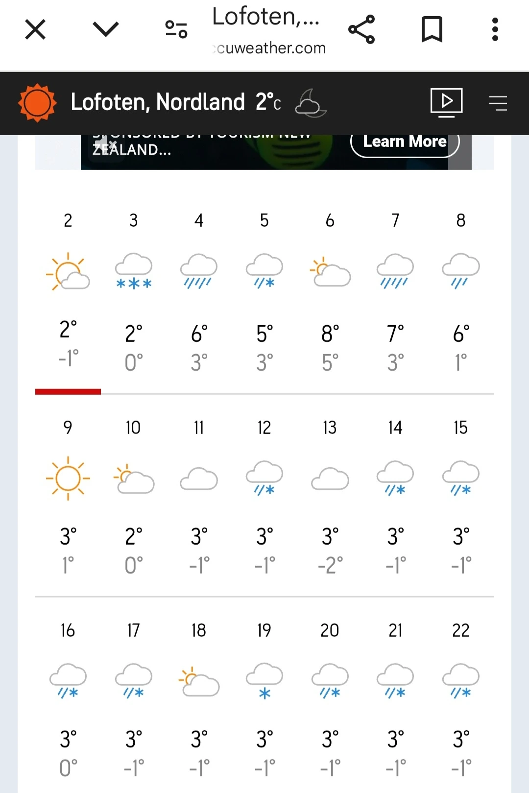 우리가 11년 전 오로라 극대기에 승선했던 노르웨이 오로라 크루즈를 두 달 전 12월에 똑같은 경로로 갔던 지인이 있다. 다행히 하늘 가득한 오로라를 두세 번이나 보았단다. 위치는? 유럽 대륙 최북단의 함메르페스트 근처란다. 로포텐에서도 하늘이 걷혀주기를, 오로라가 터져주기를 기대해 보는 수밖에.