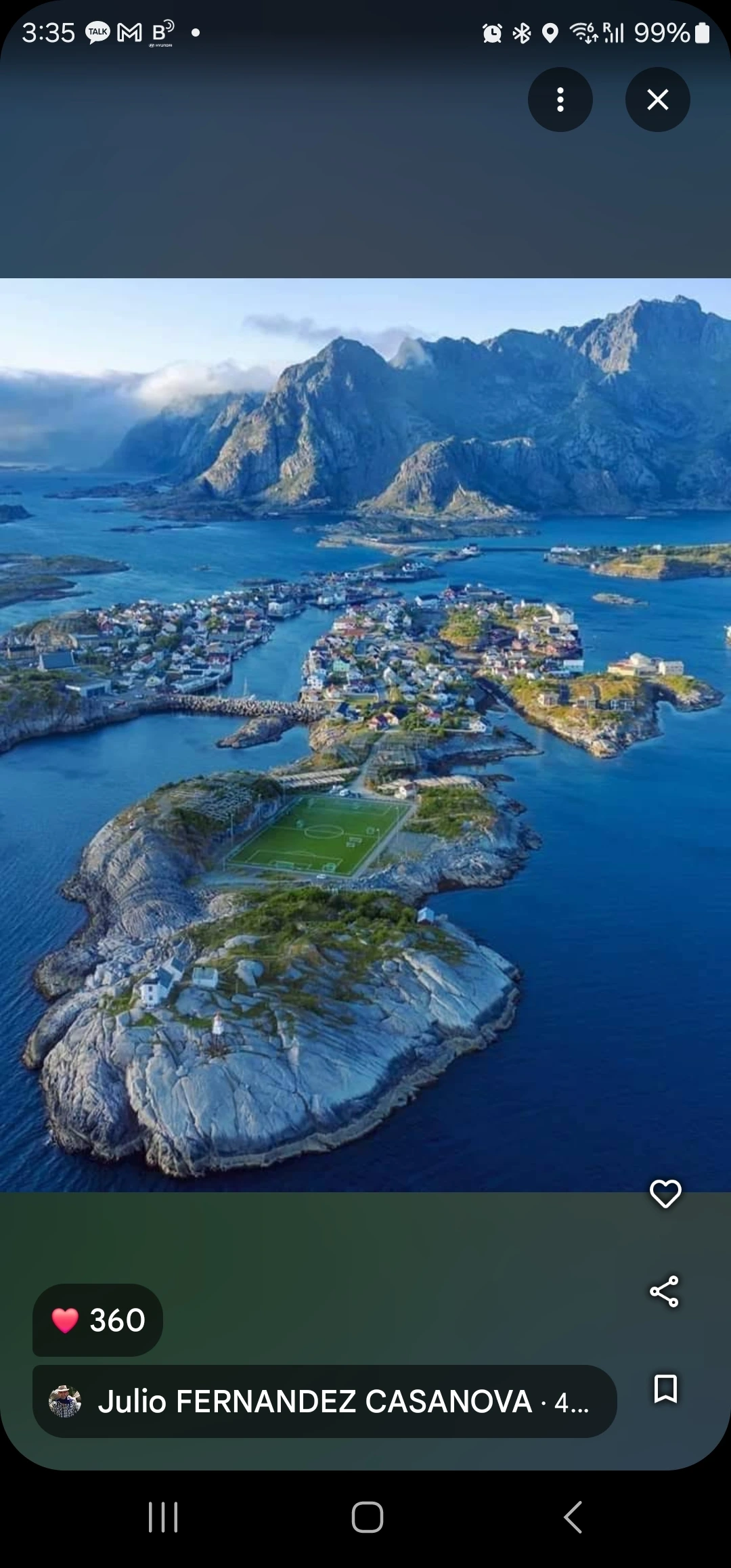 하면서 자기 구글맵을 보여준다. 트롬소 아래 로포텐 제도에 수많은 즐겨찾기 표시가 빼곡하다.