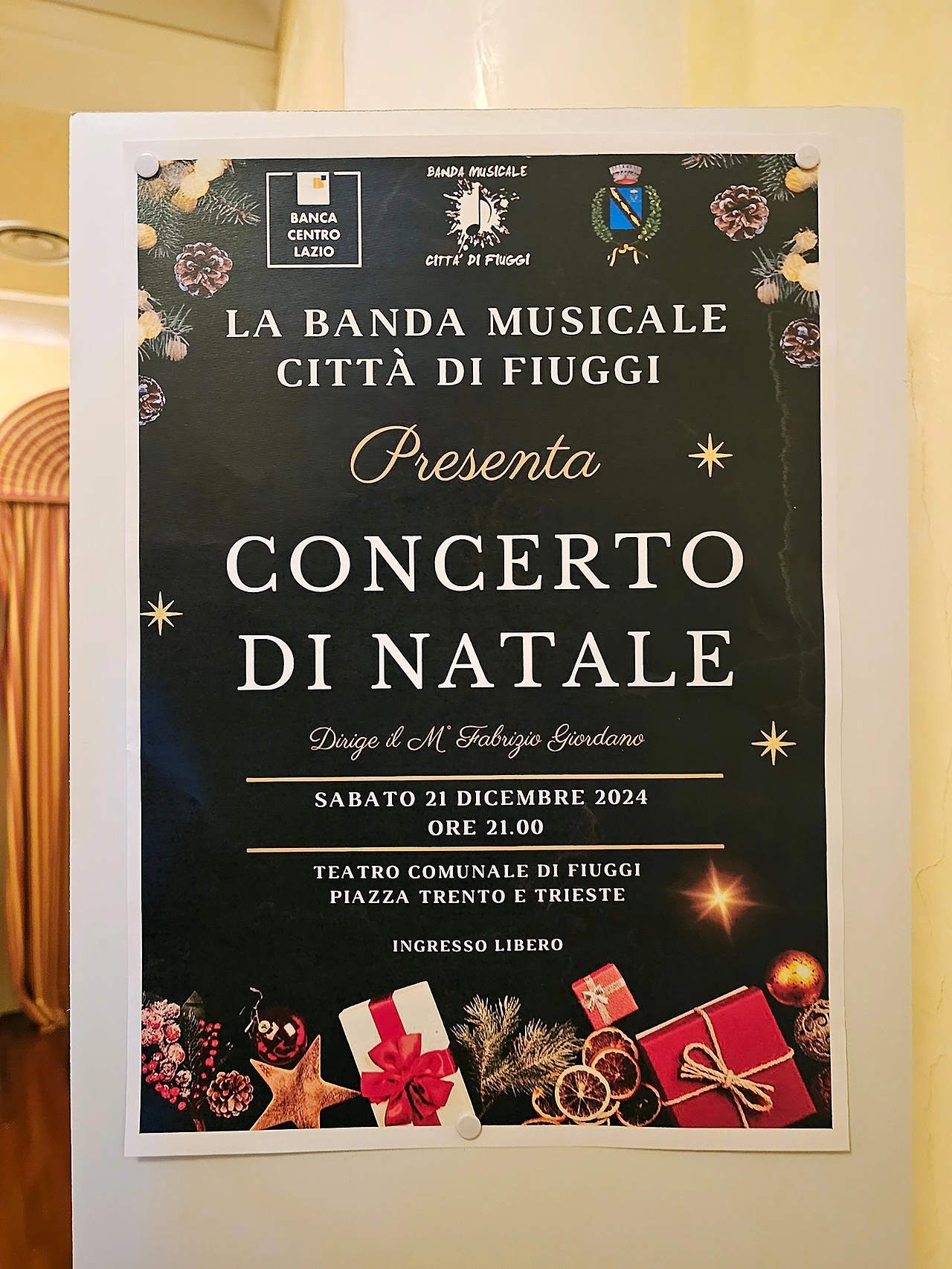 지난주 윗마을인 피우지 시타에 올라갔다가 시청 게시판에서 크리스마스 콘서트 포스터를 발견했었다. 12월 21일에 시청 바로 옆 오페라 극장에서 콘서트가 열린다고 했다. 당장 예약해야지. 그런데 Ingresso Libero? '인그레소 리베로가 뭐지?' 이탈리아어 검색을 해 보니 무료입장! 오오 굿!