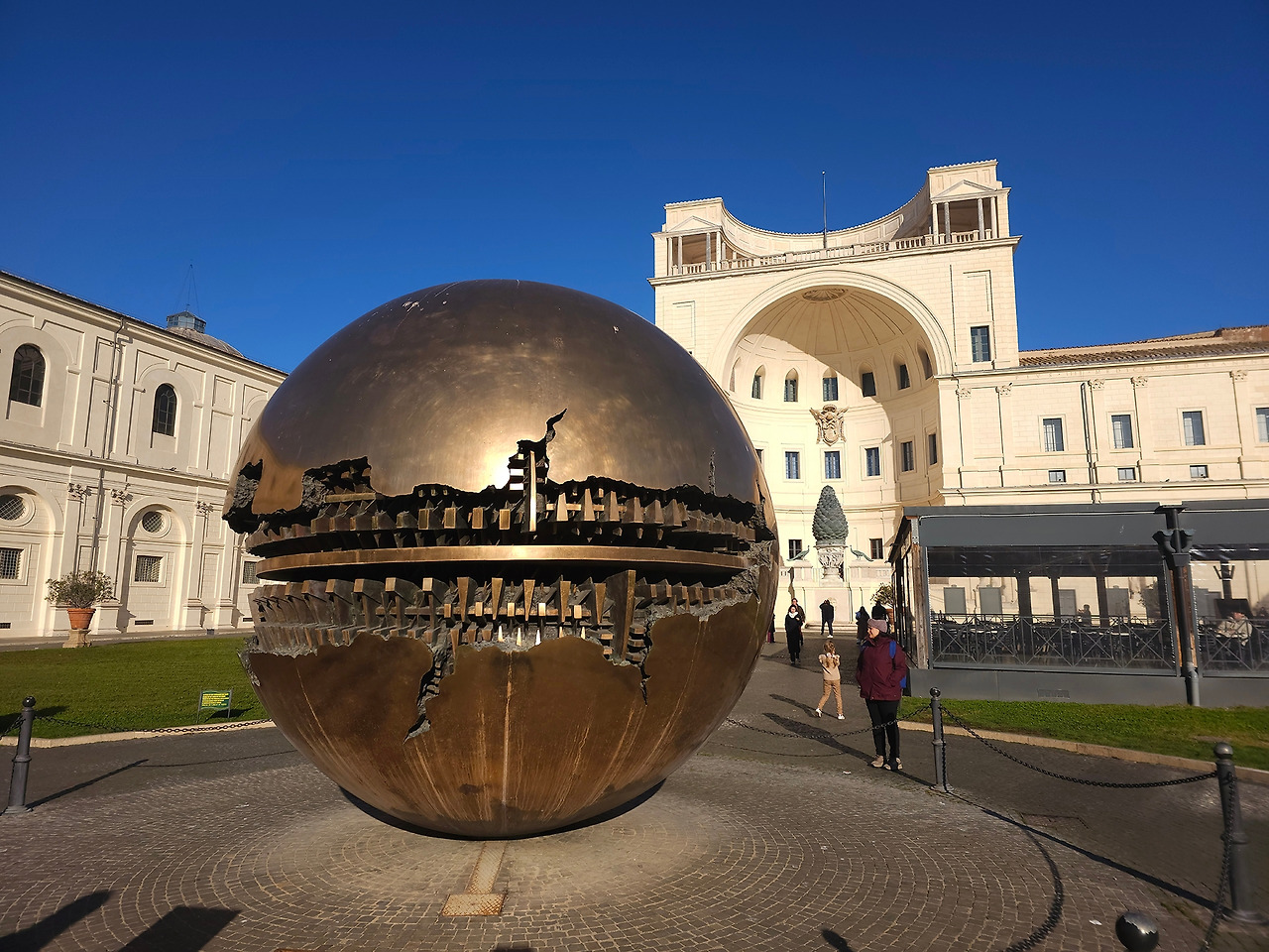 나는 바티칸의 야외 정원이 좋다. '정화"의 뜻을 품고 있는 솔방울 정원 벤치에 앉아 조각상과 한겨울에도 푸르른 나무들을 보기만 해도 좋고 거대한 조각 '천체 안의 천체'도 재미있다.
