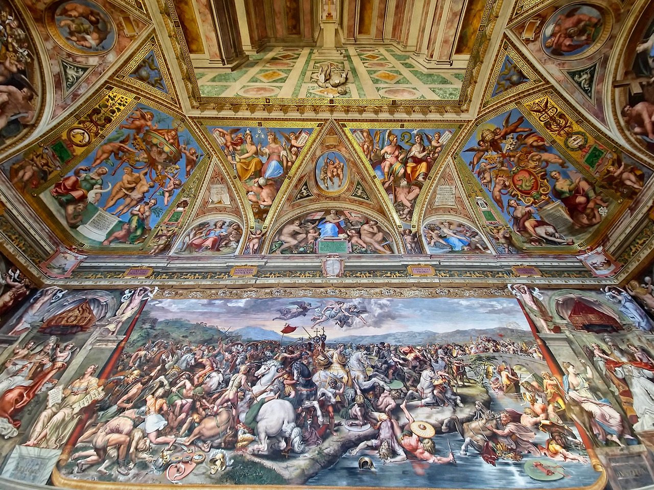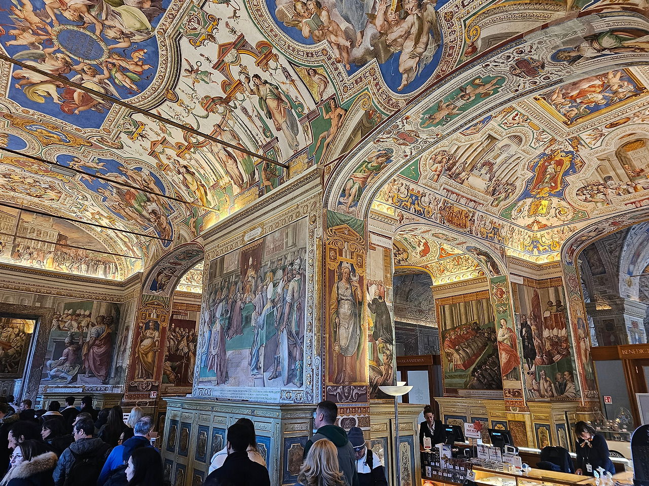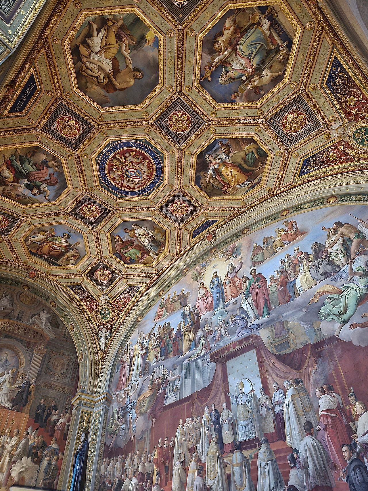 그런데 오늘은 너무나 여유롭다. 인기 있는 장소라도 떠밀려갈 정도의 인파가 아니라 적당하게 빈 공간이 생긴다. 상상했던 것보다 훨씬 만족스럽다. 라파엘로의 방을 지나 태피스트리와 지도 갤러리도 머무르고 싶은 만큼 얼마든지 있을 수 있었다.