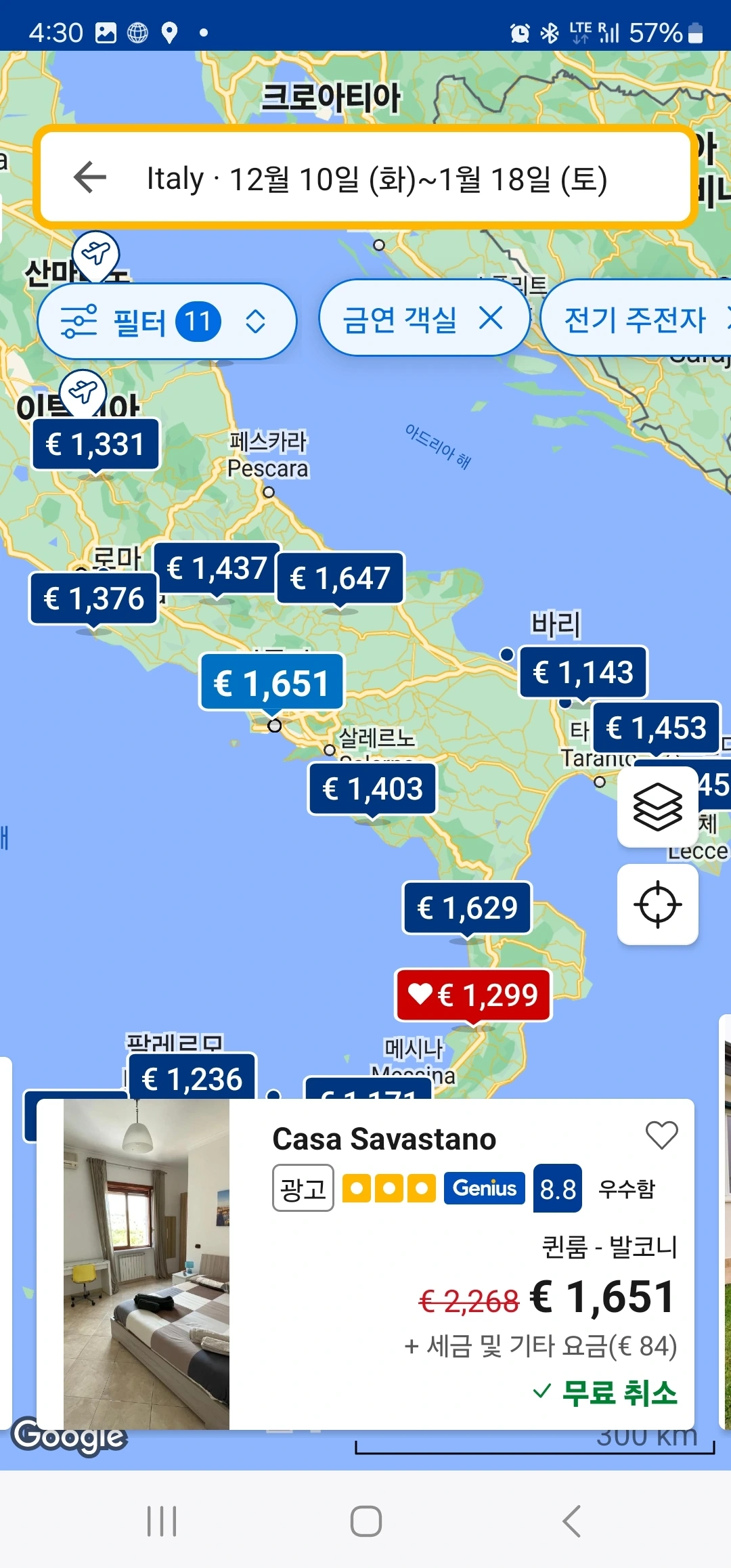 이탈리아를 장화로 생각할 때 뒷굽 쪽인 아드리아해의 항구도시 바리(Bari)에서 썩 괜찮은 집이 눈에 들어왔다. 중앙역에서 5분 이내 거리란다. '그래 교통이 최고지. 게다가 배만 타면 아드리아해 바다 바로 건너편이 크로아티아니까 두브로브니크도 다녀오자.' 그런 마음으로 바리의 숙소 예약을 완료했다.