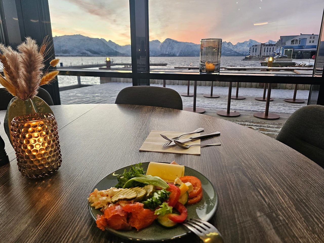 어제 하루 종일 장거리 운전으로 무리를 했기 때문에 오늘 오전은 숙소에서 쉬기로 했다. 소트란드 항구에 있는 스칸딕(Scandic) 호텔은 이번 여행의 베스트 숙소가 될 것 같다. 방도 넓고 쾌적한 데다 훌륭한 조식까지 포함이다. 신선한 노르웨이산 연어를 본고장에서 실컷 먹었다.